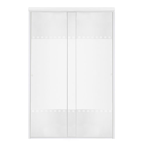 Cancel para baño Canceles Aga, su sistema doble corredizo facilita la apertura de las hojas. Elaborado de cristal templado esmerilado con un espesor de 6 mm y marco de aluminio blanco. Tiene una altura de 187 cm con ancho disponible de 156 a 160 cm.