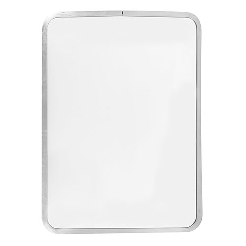 Espejo Reflexión, sus medidas son 45 x 41 60, cuenta con una forma rectangular y marco de aluminio resistente, incluye kit de colgado y se puede colocar de manera horizontal o vertical.